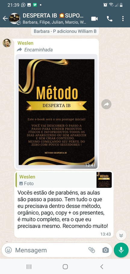 Através do Método DESPERTA IB, você vai descobrir como gerar renda no mercado digital, sem precisar criar produto, fazer dancinhas ou aparecer.