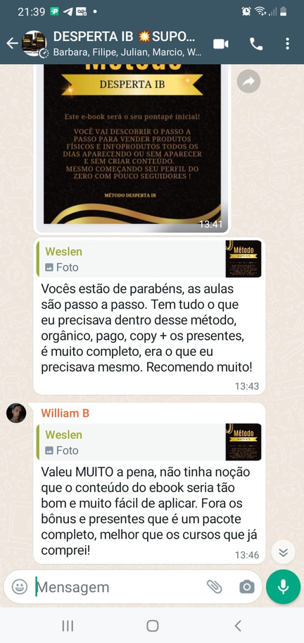 Depoimento de alunos que já adquiriram o E-book DESPERTA IB